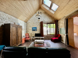 Elle se compose au rez-de-chaussée : d'une belle pièce de vie d'environ 50 m2 avec un poële à granulé, une cuisine semi ouverte, une chambre, deux salles d'eau et un WC séparé.