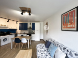Il se compose d’un espace de vie lumineux, d’une cuisine aménagée, de deux chambres, d’une salle d’eau et d'un WC. Terrasse et jardin intimiste.
