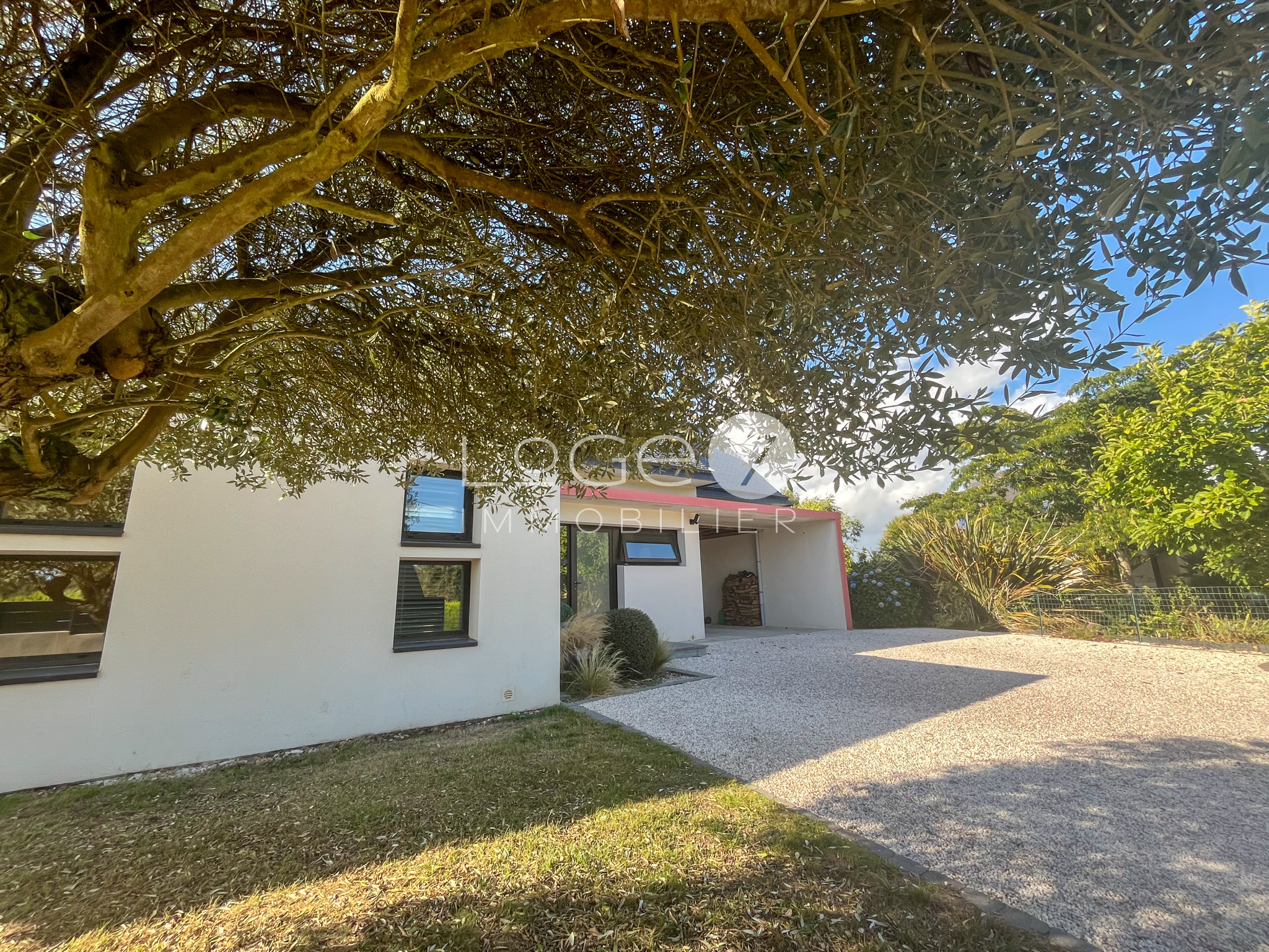 Dans un cadre paisible en campagne, à moins de 5 minutes des commodités, venez découvrir cette maison d'architecte de 2005 de plus de 130m² composée au rez-de-chaussée, d'une grande entrée avec placard, un séjour lumineux avec poêle à bois, une cuisine ouverte avec un accès sur une arrière cuisine/buanderie, une suite parentale et WC. Deux belles chambres à l'étage, une salle de bains avec WC, ainsi qu'une mezzanine-bureau spatieuse. Un cellier, un abri voiture surmonté d'un grenier offrant un beau potentiel d'aménagement avec possibilité d'accès direct depuis l'étage, ainsi qu'une terrasse bois intimiste, complètent ce bien. Beau jardin arboré paysagé de 1000m², piscinable, entièrement clos et sans vis à vis. Elle n'attend plus qu'une nouvelle famille !