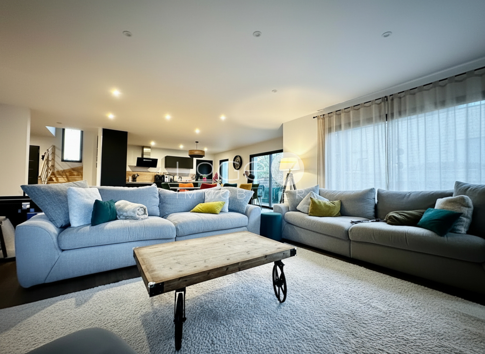 Vos agences LOGE 7 Immobilier vous invitent à découvrir cette maison récente au style résolument moderne, offrant une vie de plain-pied, des volumes généreux et une belle luminosité.