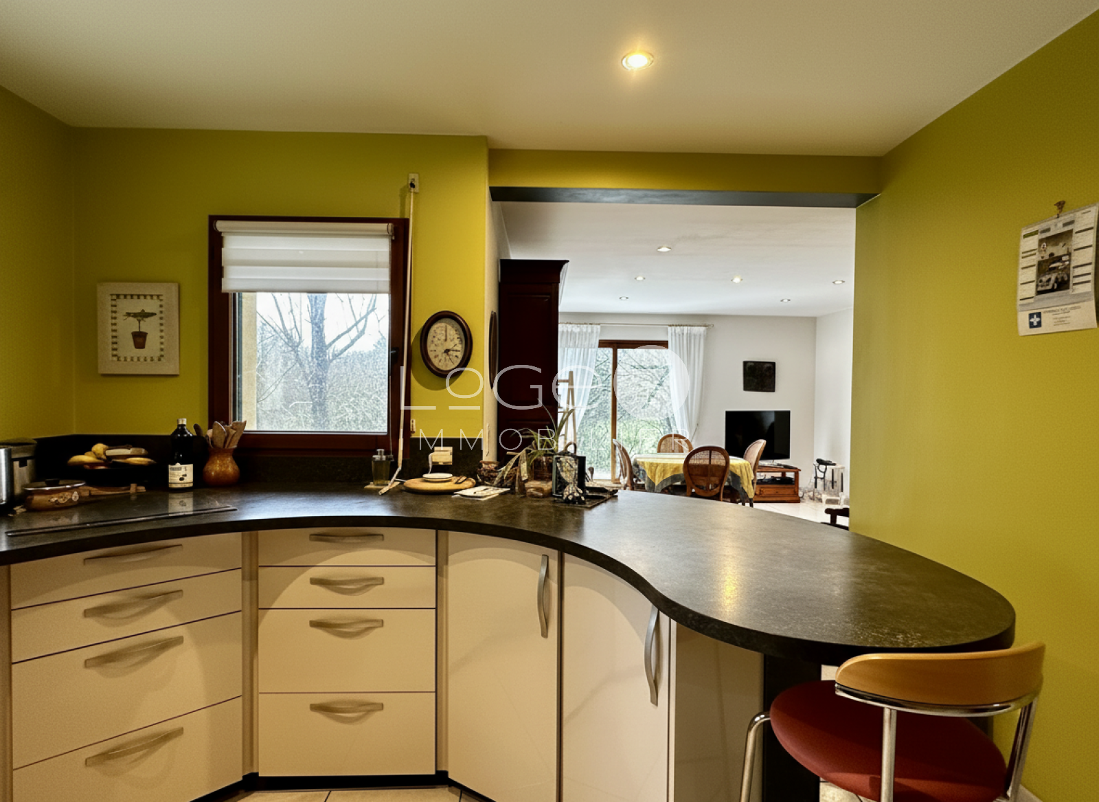 La cuisine aménagée et équipée, fonctionnelle et conviviale, s’ouvre naturellement sur les espaces de vie et se prolonge par une buanderie attenante, pratique au quotidien.