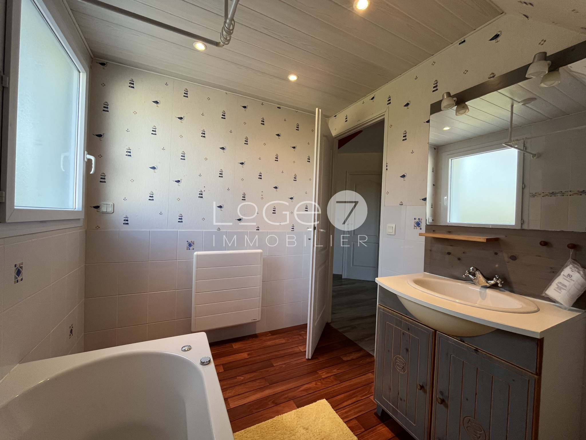 Un garage accolé vient compléter l’ensemble, ainsi qu’un sous-sol total particulièrement fonctionnel comprenant une buanderie, une cave, un grand espace de rangement et des WC. Espace organisé et pratique pour les sports nautiques ou autres activités.