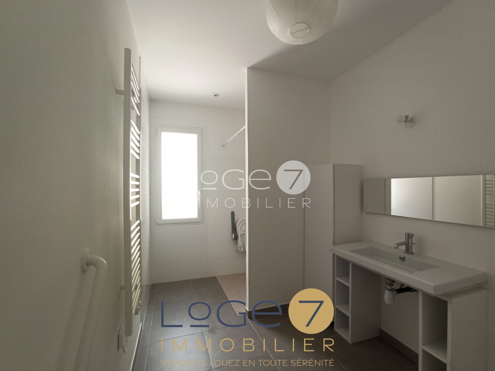 Elle se compose d'une belle pièce de vie lumineuse de 30m² exposée Sud-Ouest avec cuisine ouverte équipée et un accés directe sur une grande terrasse d'environ 120m², deux chambres, une salle d'eau avec WC et douche à l'italienne, un garage attenant et un carport protègeant une place de parking privée.