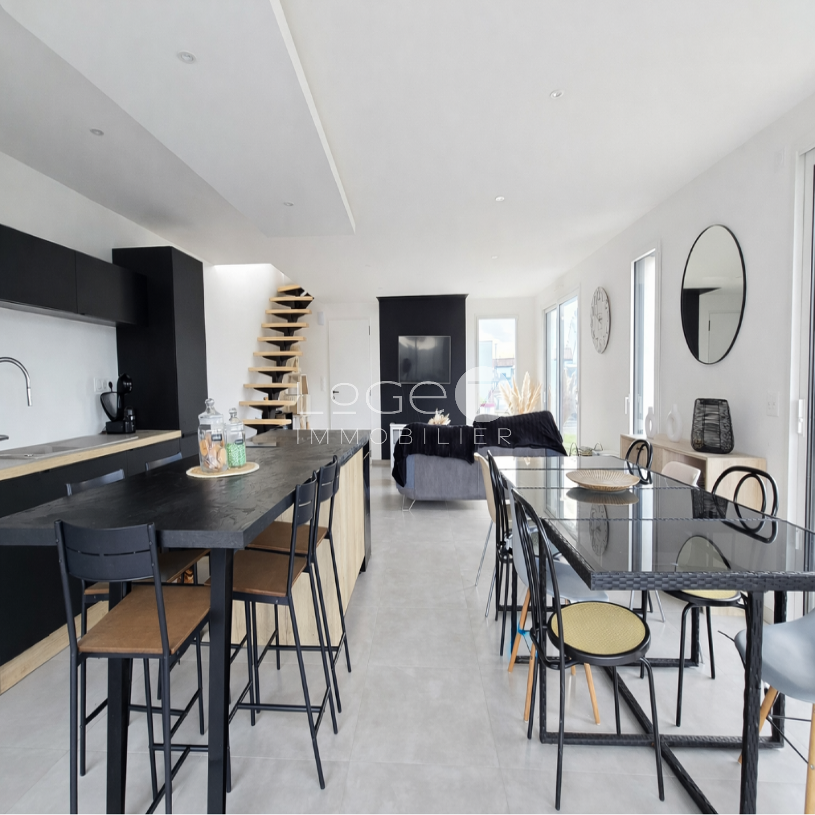 Au rez-de-chaussée, elle se compose d’une pièce de vie de plus de 50 m² avec cuisine équipée ouverte, baignée de lumière, d’une suite parentale avec chambre, dressing et salle d’eau privative, d’un cellier / arrière-cuisine ainsi que d’un WC indépendant.