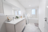 Maison construite en 2023, équipée d’un chauffage au sol par pompe à chaleur sur les deux niveaux ainsi que dans le garage, raccordée à la fibre optique et au tout-à-l’égout, bénéficiant d’une exposition Nord-Ouest, mitoyenne sur un côté (garage) et réalisée par des artisans locaux.