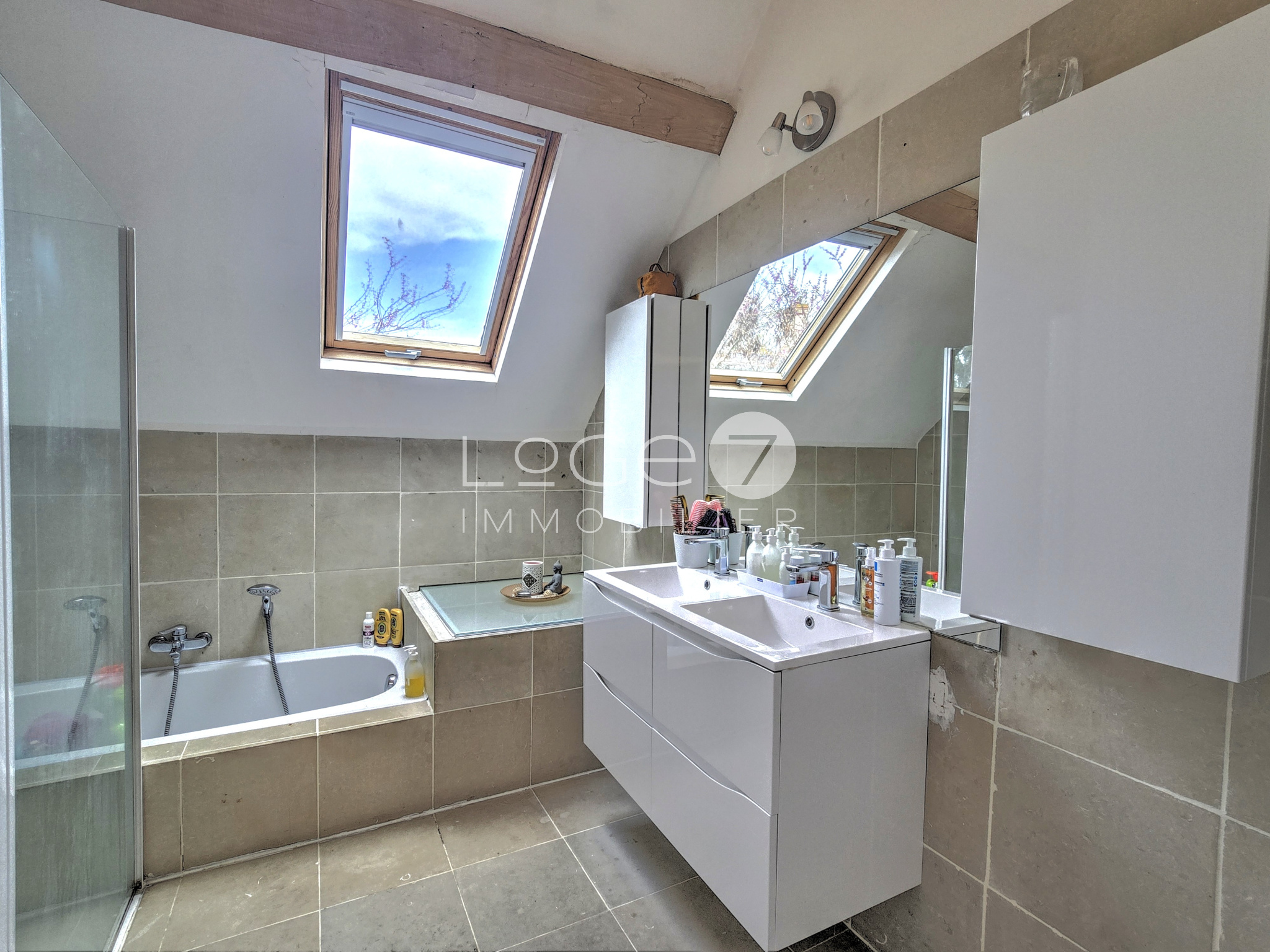 Un demi-étage supplémentaire offre un espace bureau en mezzanine ainsi qu’une suite parentale avec dressing et salle de bain (douche, baignoire et WC indépendant).
