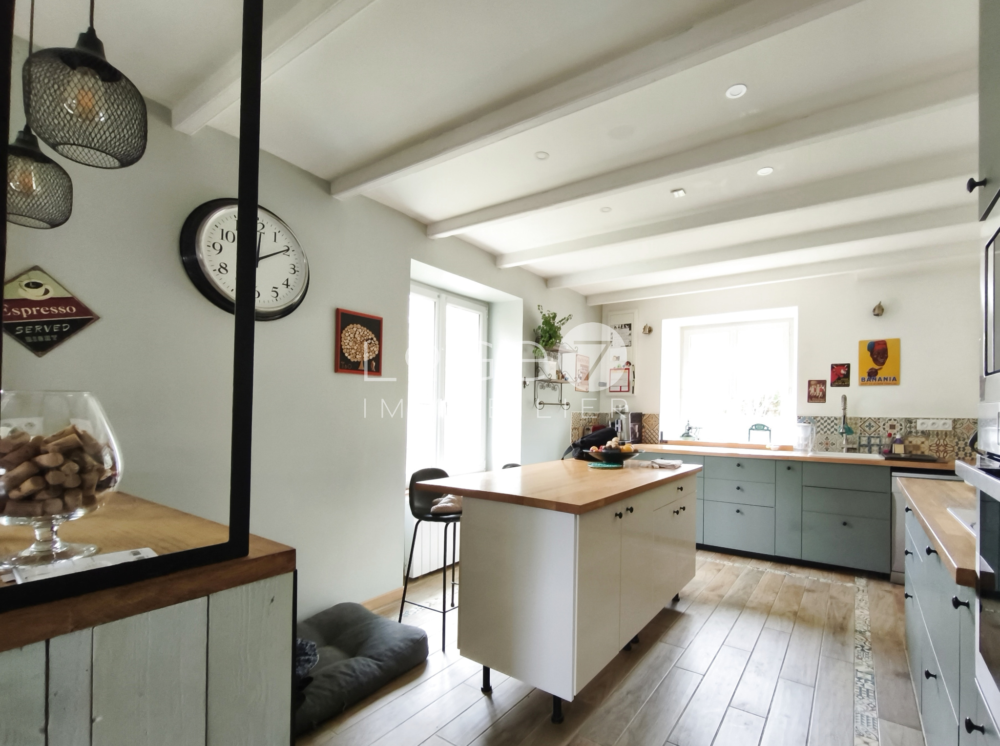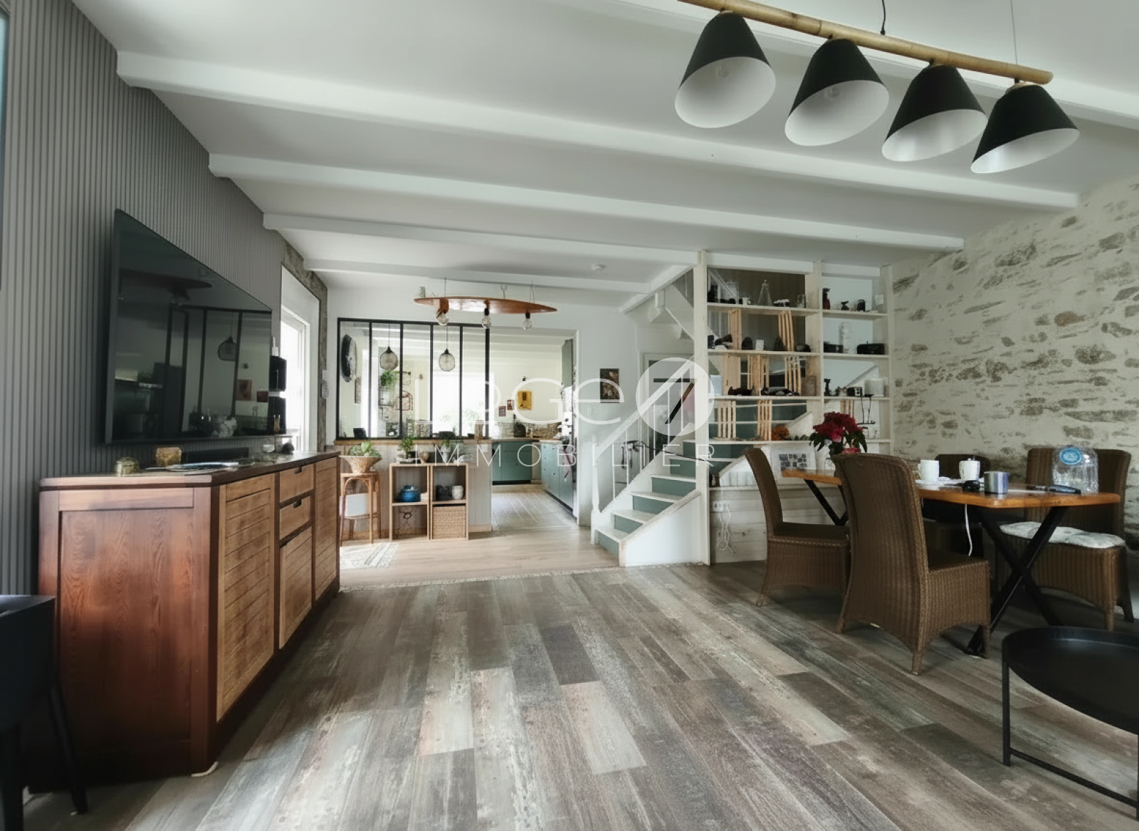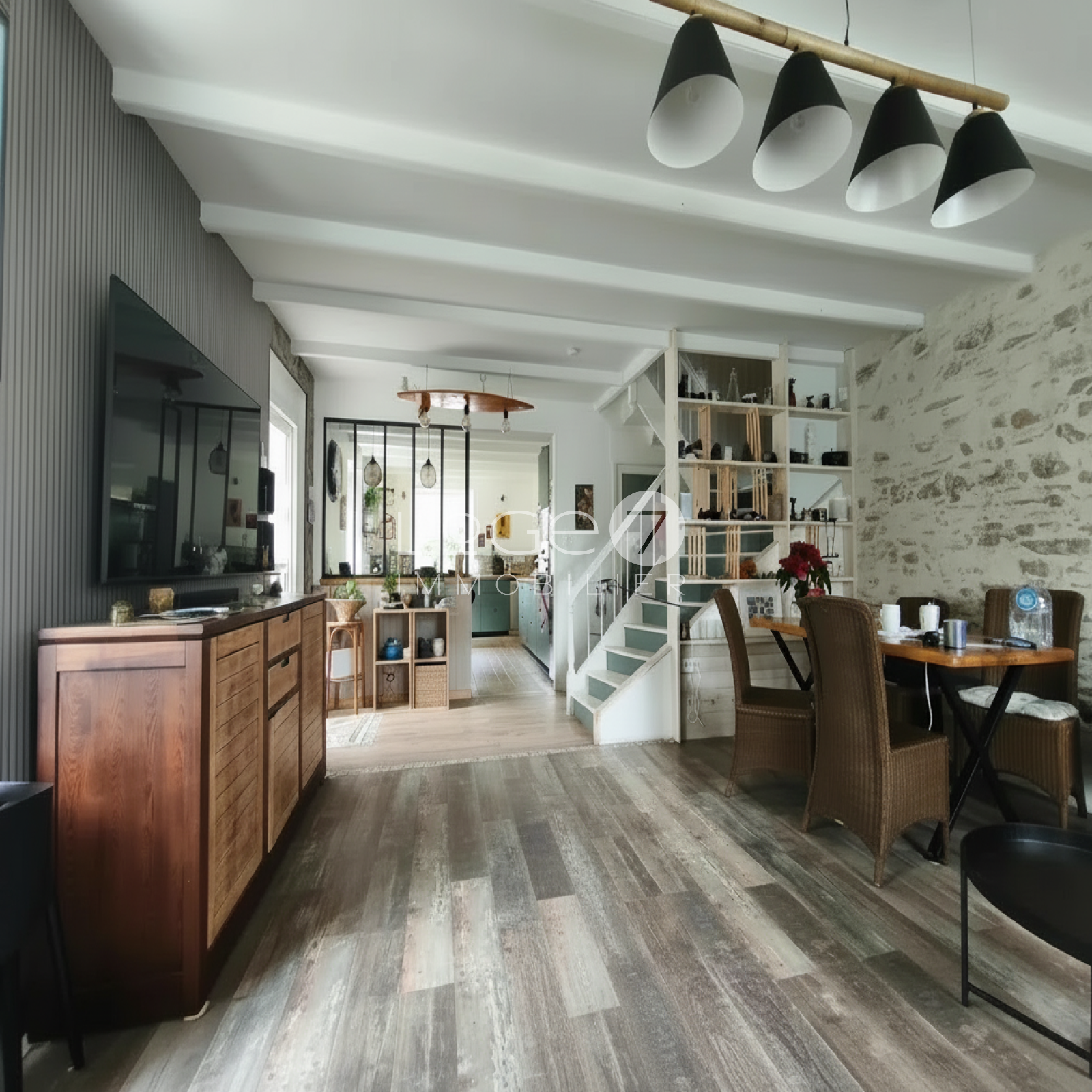 Derrière le jardin arboré, presque confidentiel, la maison dévoile une atmosphère rare :celle d’un équilibre parfait entre authenticité et modernité.