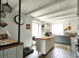 La pièce de vie s’ouvre naturellement, fluide et conviviale, autour d’une cuisine élégamment aménagée et équipée, pensée comme le cœur de la maison.