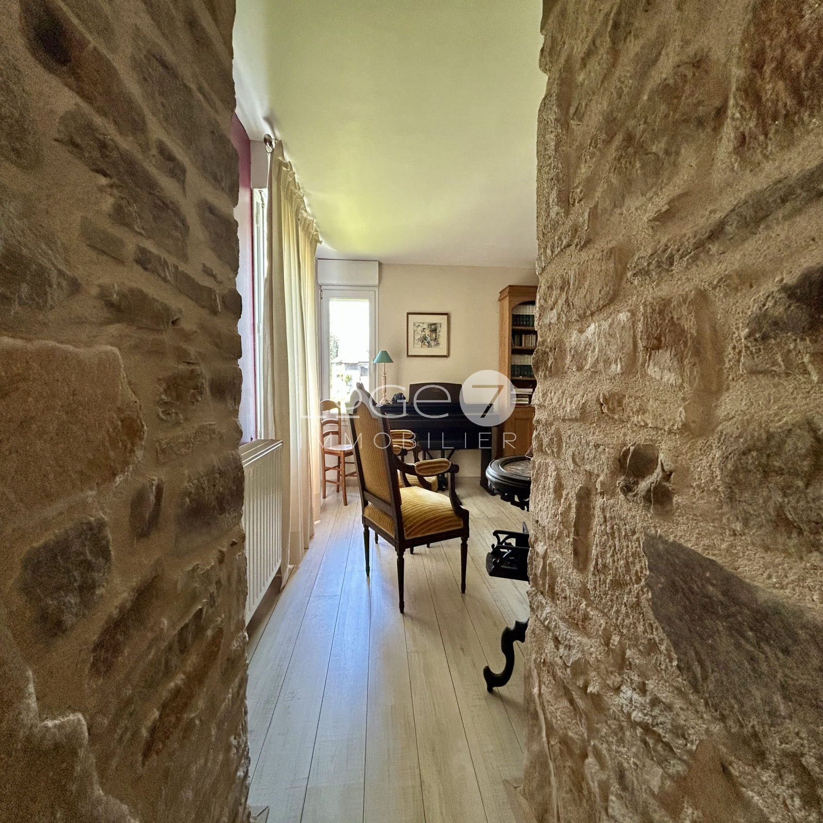 Au rez-de-chaussée, vous serez séduit par la pièce de vie de 49 m², baignée de lumière, avec cuisine ouverte aménagée et équipée. Les murs en pierre apparente et le poêle à bois installé dans l’ancienne cheminée créent une atmosphère chaleureuse et conviviale.