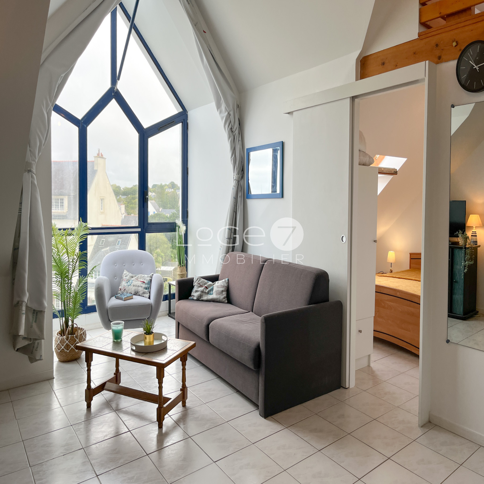Vos agences LOGE 7 IMMOBILIER, vous proposent à la vente en EXCLUSIVITE ce bel appartement de 32 m² (42 m² au sol) situé au cœur du Pouldu, à deux pas des commerces. Il séduit par son agencement optimisé et sa vue mer imprenable depuis le balcon.