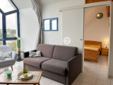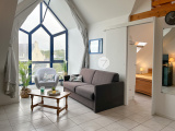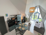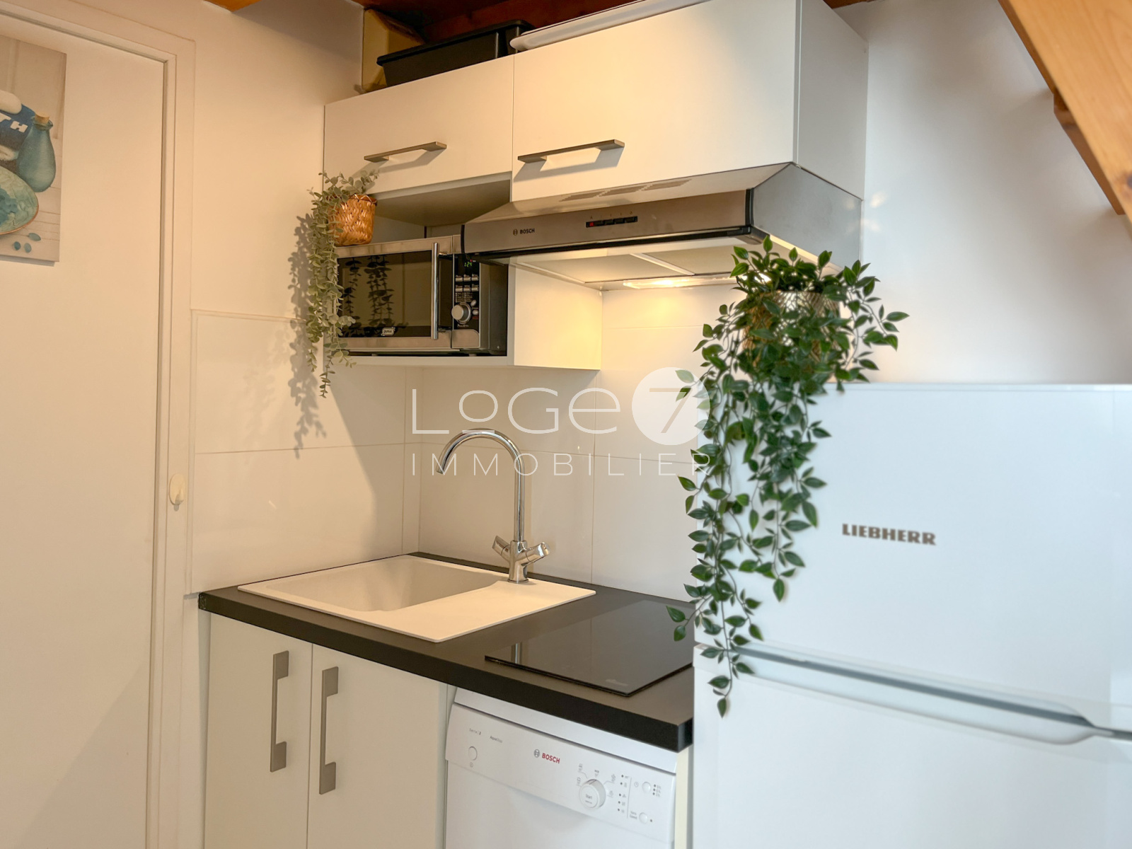 La pièce de vie de 22 m², lumineuse et conviviale, s’ouvre sur une kitchenette fonctionnelle. L’espace nuit se compose de deux chambres, dont une en mezzanine, offrant confort et praticité.