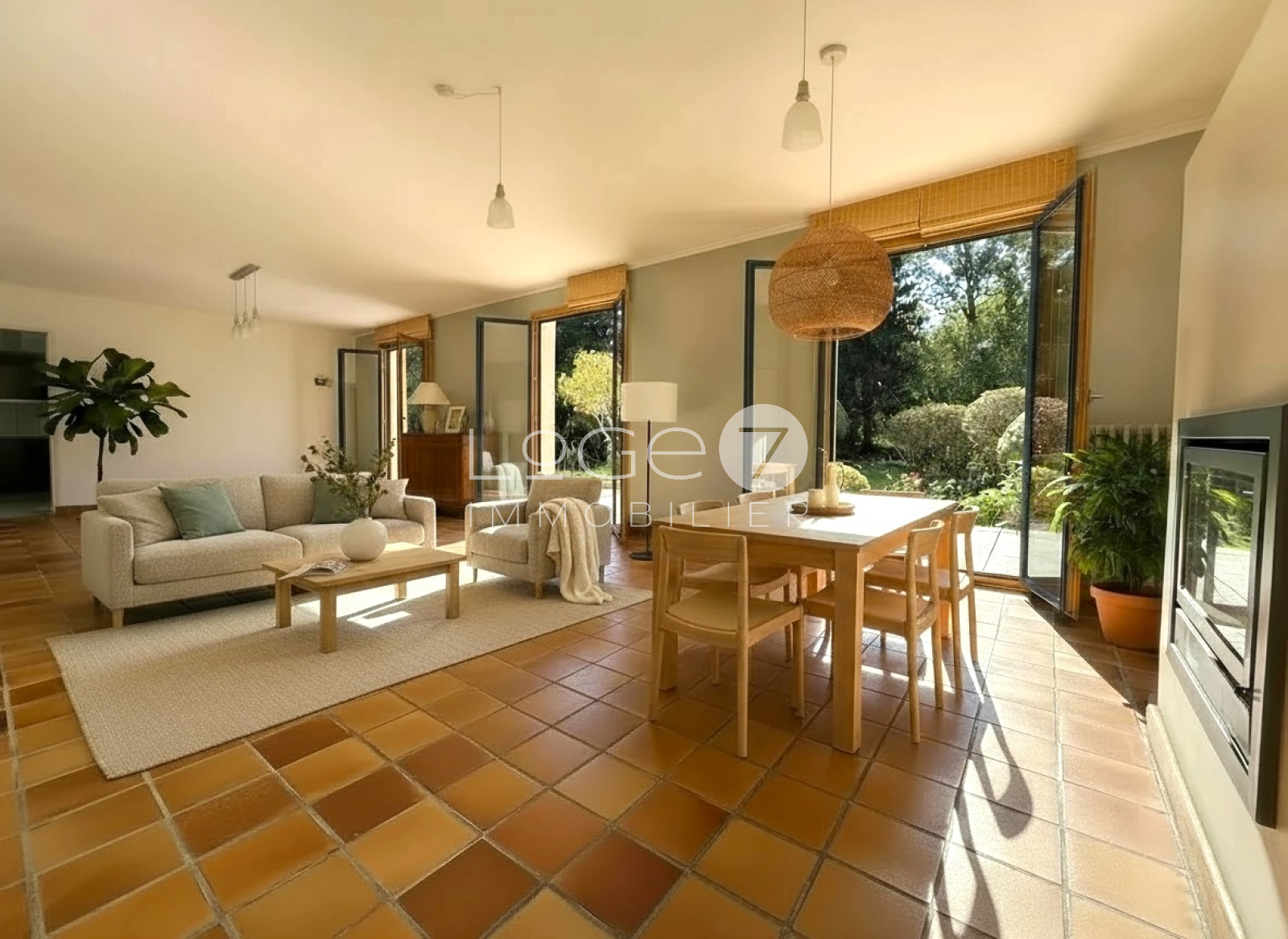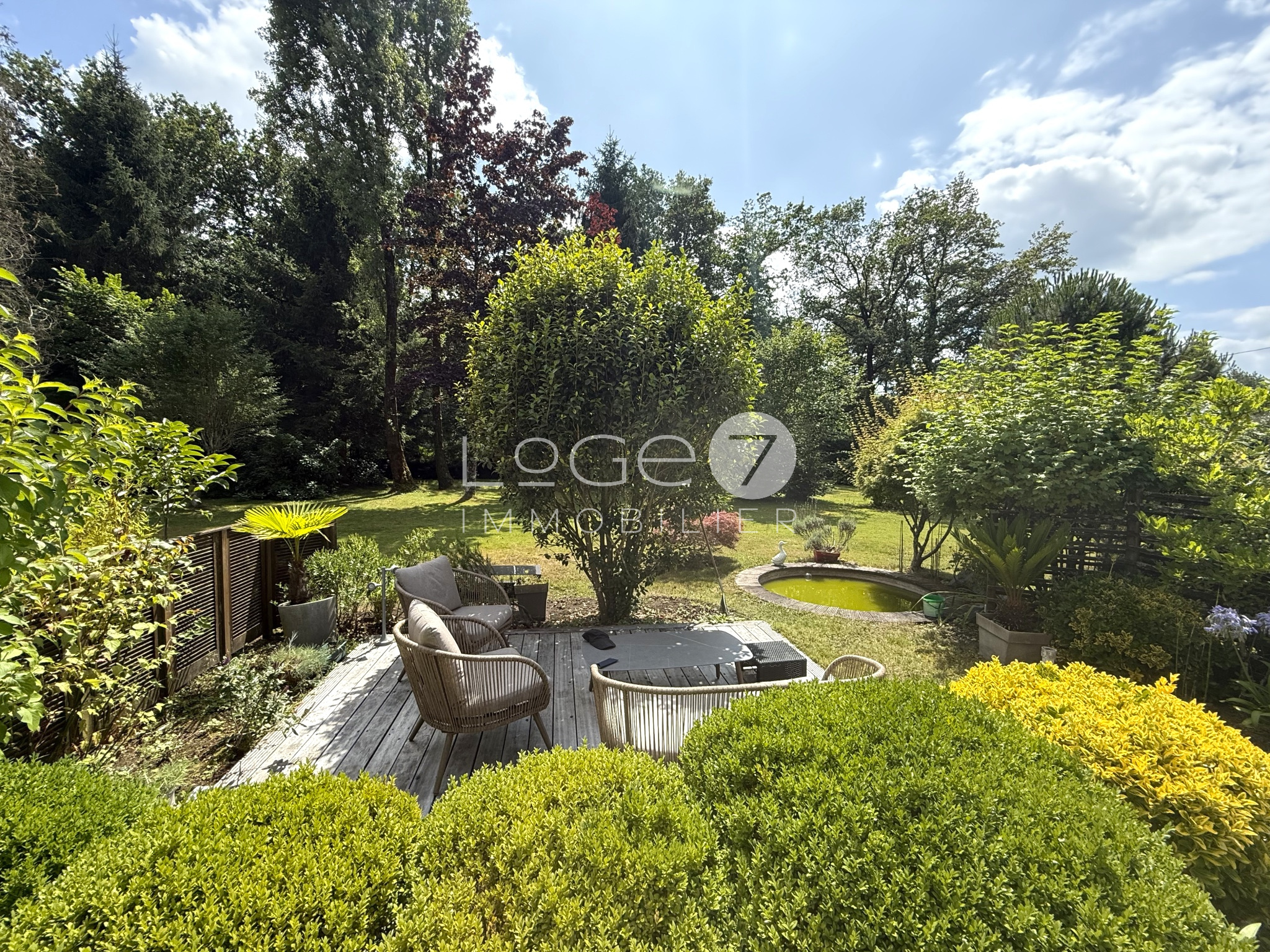 Au cœur d’un superbe parc paysager d’environ 5 000 m², bordé par 1,2 hectare de bois privés, cette maison familiale de 149 m² offre un cadre de vie rare, à la fois verdoyant et intime.