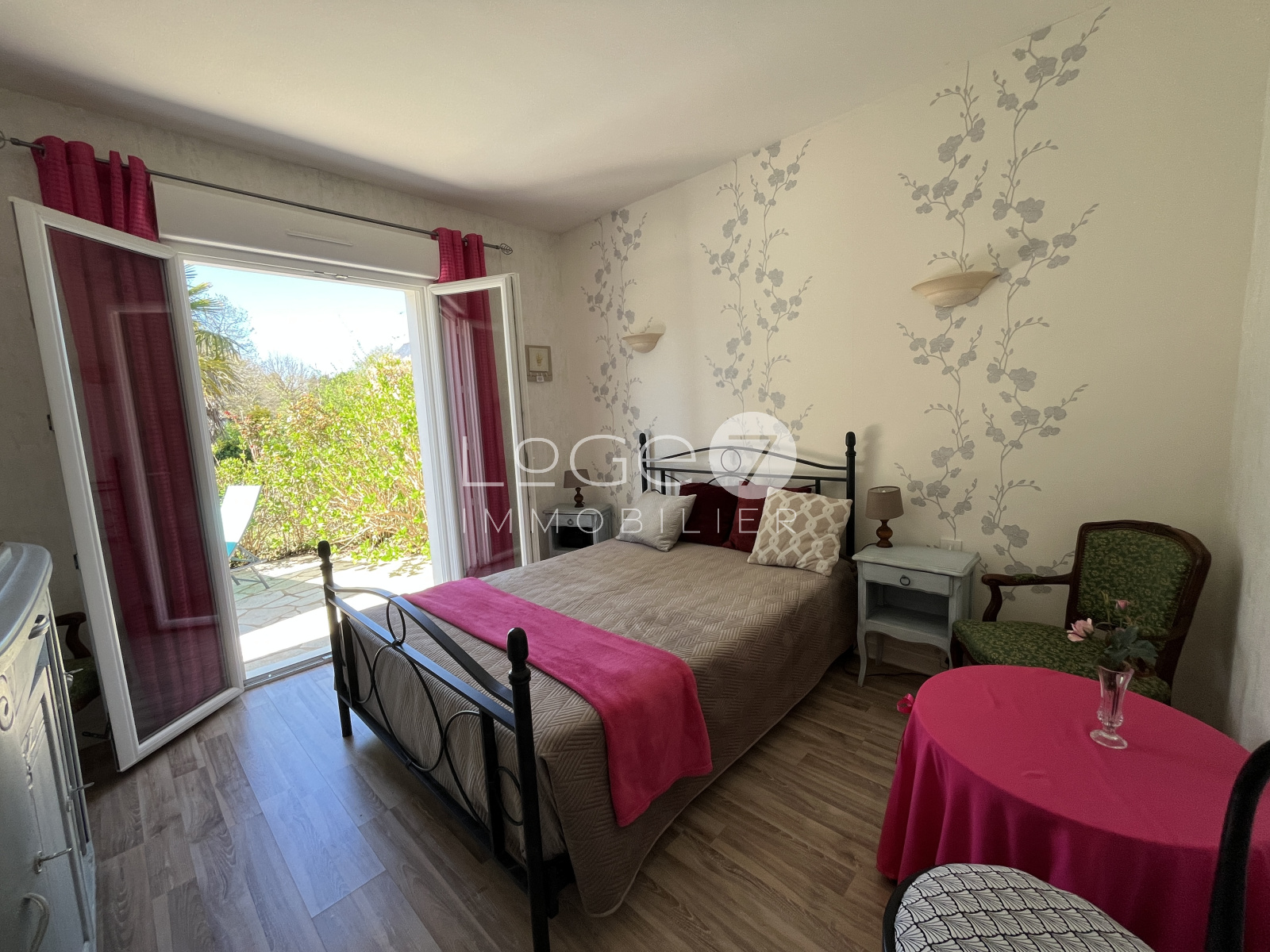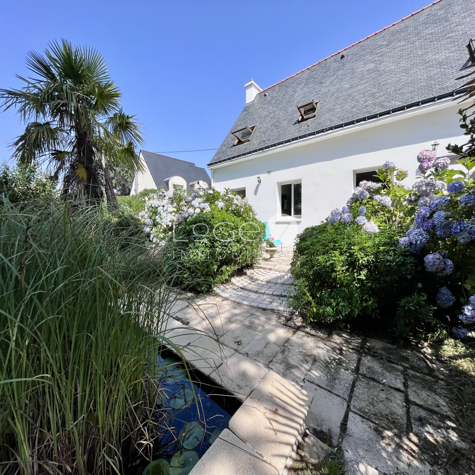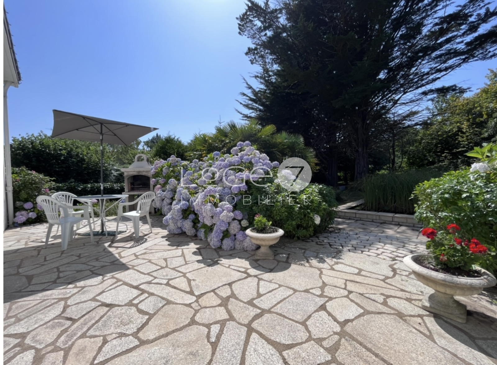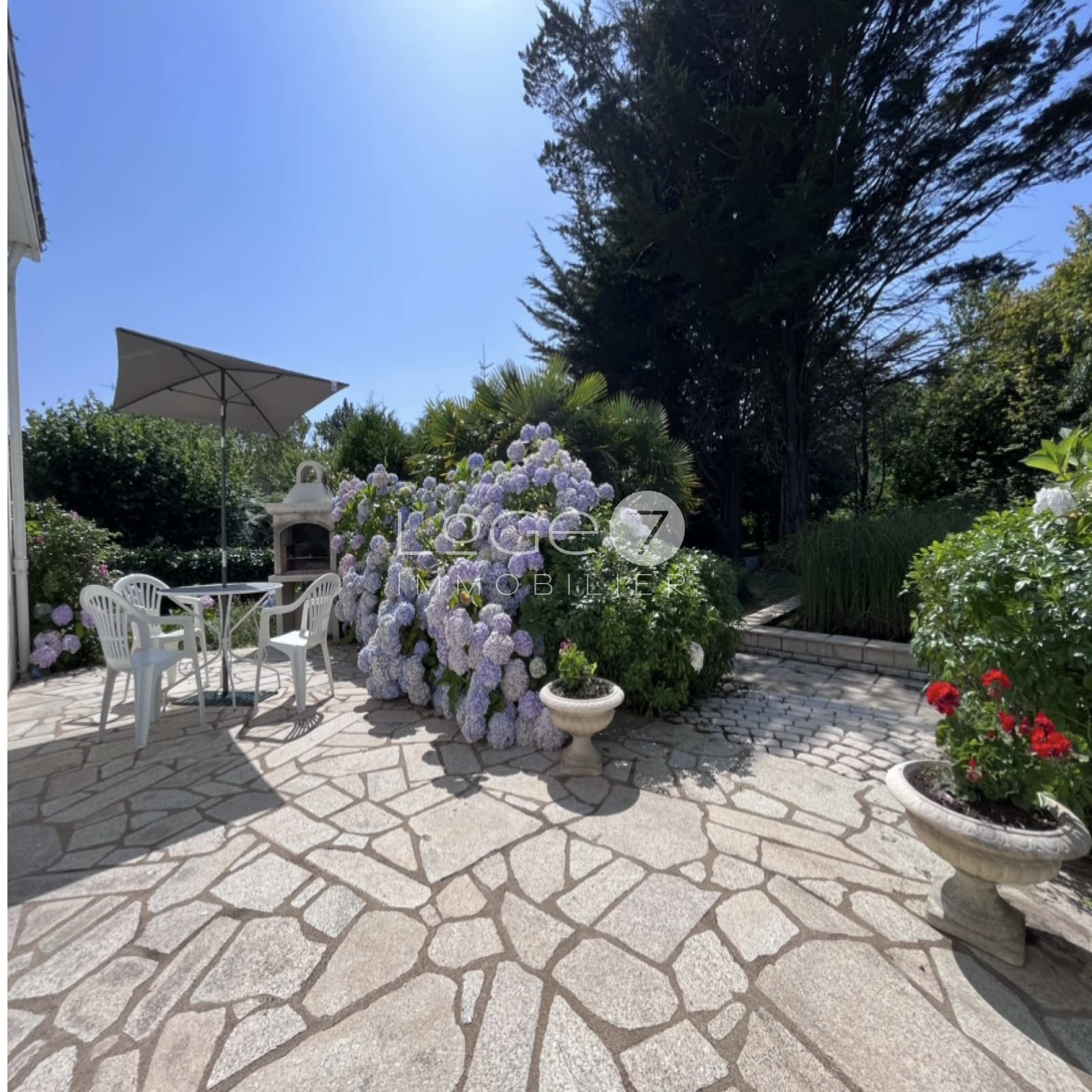 Deux belles terrasses en pierres, un jardin arboré et fleuri agrémenté d'un bassin et un garage attenant, complètent ce bien.
