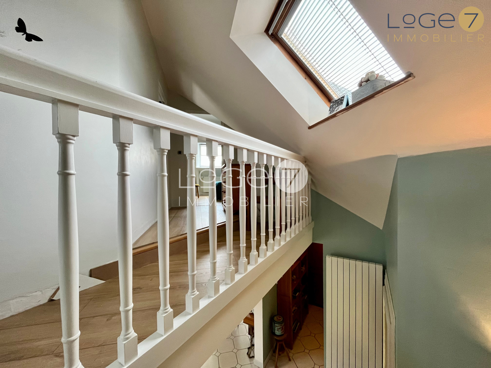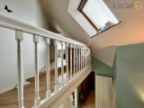 À l'étage, une mezzanine faisant office de bureau et trois belles chambres lumineuses et aux volumes généreux. Une salle de bains avec WC.