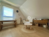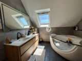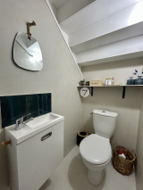 A l'étage, elle se compose de deux belles chambres lumineuses, d'une mezzanine qui peut faire office de bureau mais aussi d'une 4ème chambre. Une salle de bain avec baignoire d'angle et douche complète l'étage ainsi qu'un toilette indépendant.