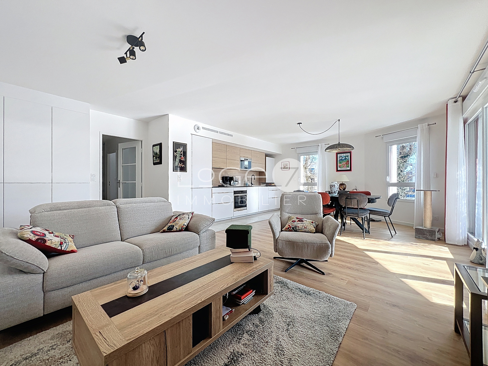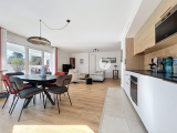 Situé au 1er étage d'une résidence sécurisée avec ascenseur de 2024, très beau T4 situé en plein bourg de Ploemeur. Il comprend une entrée, une cuisine aménagée/équipée ouverte sur séjour-salon donnant sur une terrasse d'environ 17 m2 exposée plein Sud, une chambre avec salle d'eau privative, deux autres chambres, une salle de bain et un WC. Un double garage d'environ 27 m2 au sous-sol. Local à vélos.