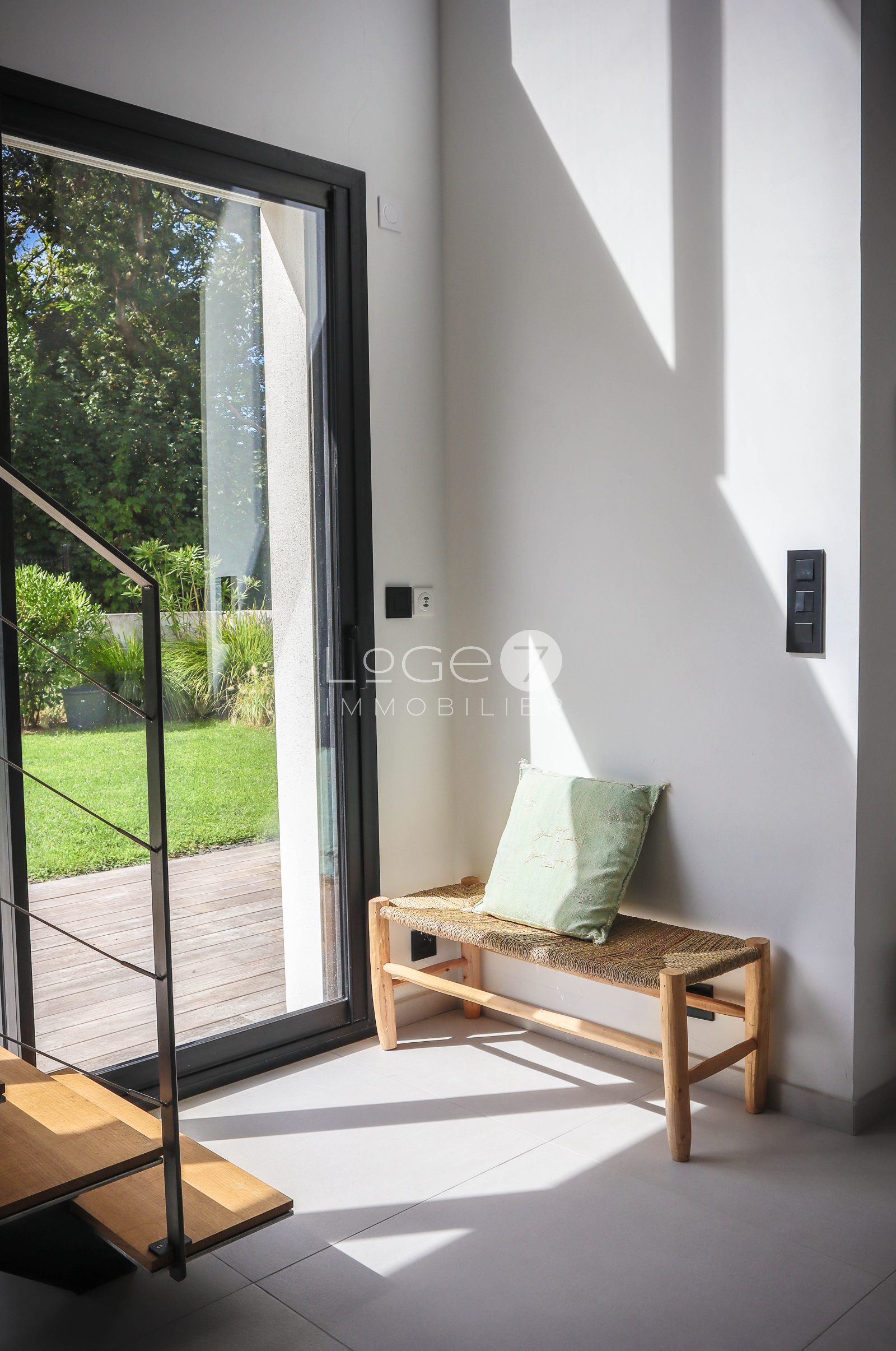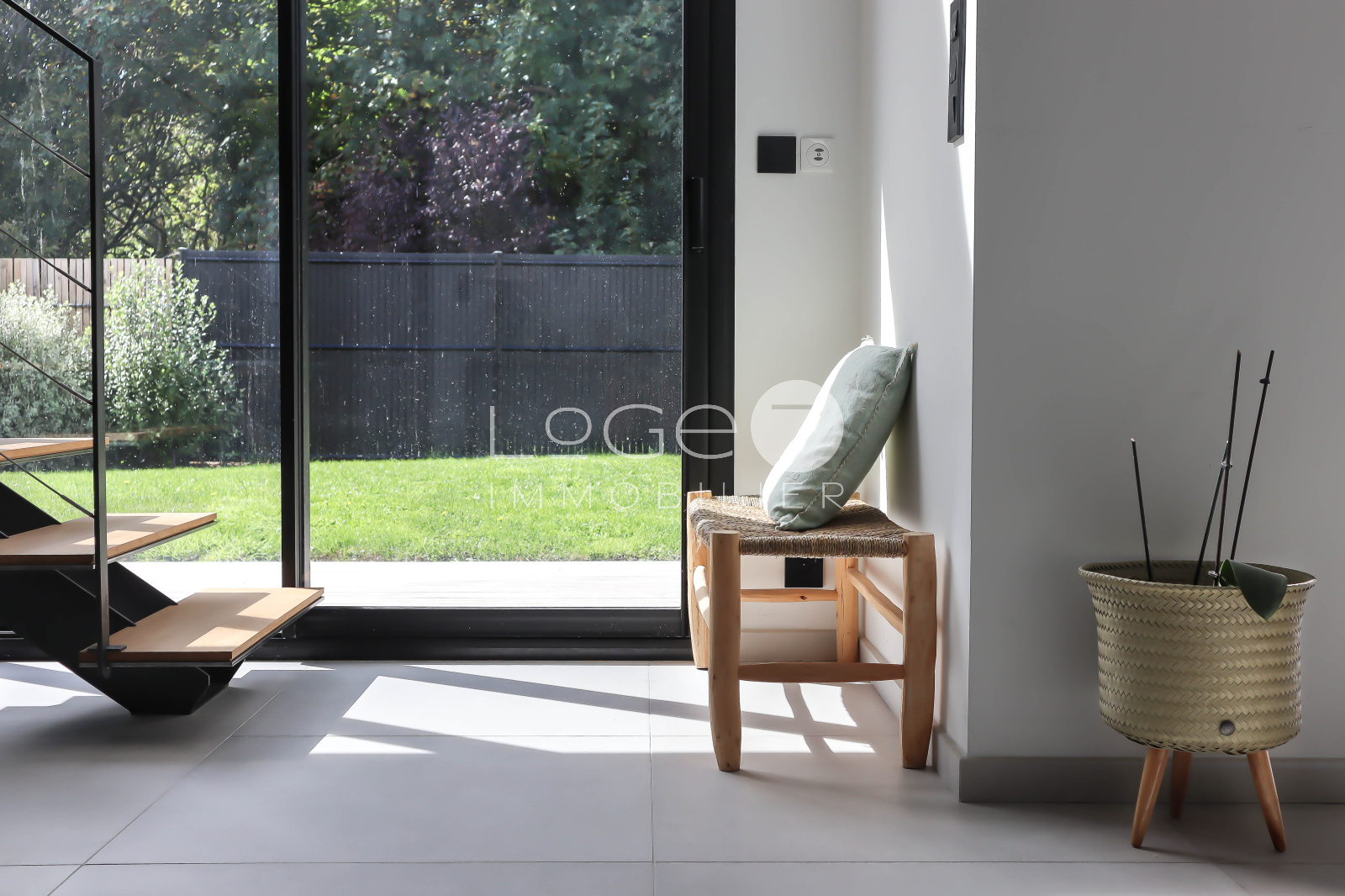 À l’extérieur, le jardin paysagé et le patio arboré créent un cadre intime et soigneusement aménagé. La pièce de vie et la terrasse sont exposées sud-ouest, idéales pour profiter pleinement des belles journées.